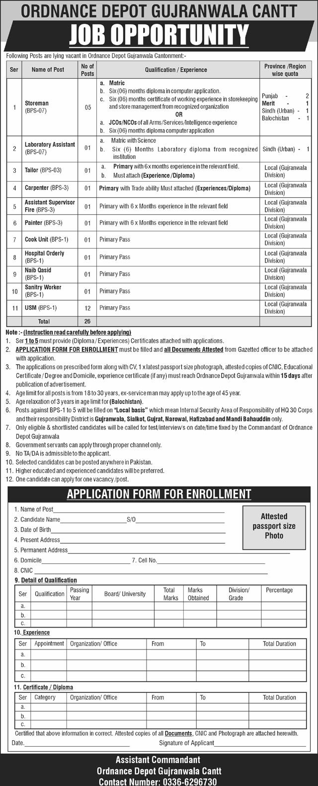 Ordnance Depot Gujranwala Cantt - Ensure submission within 15 days of advertisement publication