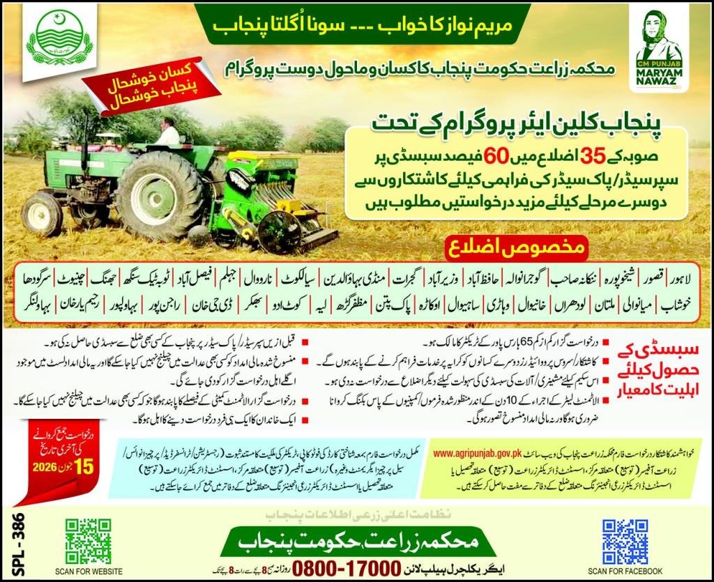 Note That Farmers residing in the selected 35 districts of Punjab who own a tractor with at least 65 horsepower and have not previously received this subsidy are eligible to apply In this program